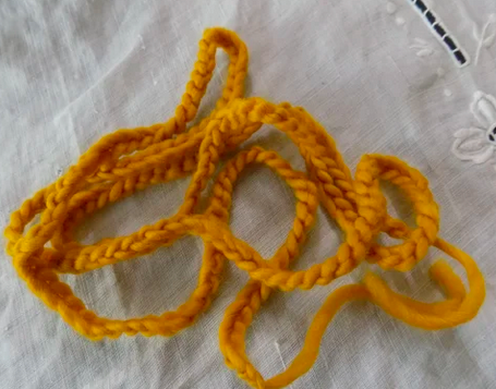 http://www.instructables.com/id/Felted-Shoelaces/ I’ve seen a lot of felt shoelaces, they’re always made from wool roving that is wet with soapy water, then rolled like you’re making a snake out of play-dough until they get long and skinny. They’re usually lumpy and irregular, at least when I’ve tried to make them. So the brilliance of chain-stitching, then …