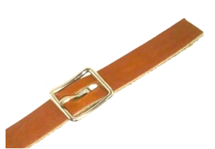 Attach a buckle to a leather strap. Determine its length, then add about one and one-half inches for the piece of it that goes behind the buckle, just long enough to catch with stitching or a rivet.