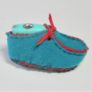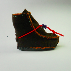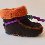 I’ve tried to give these shoes for Solomon, my grandson, a contemporary look with a toggle closure, but they could be embroidered and the seams bound with patterned cloth tape, and they would look like a pair from one of Jan Brett’s Scandinavian-influenced children’s books.